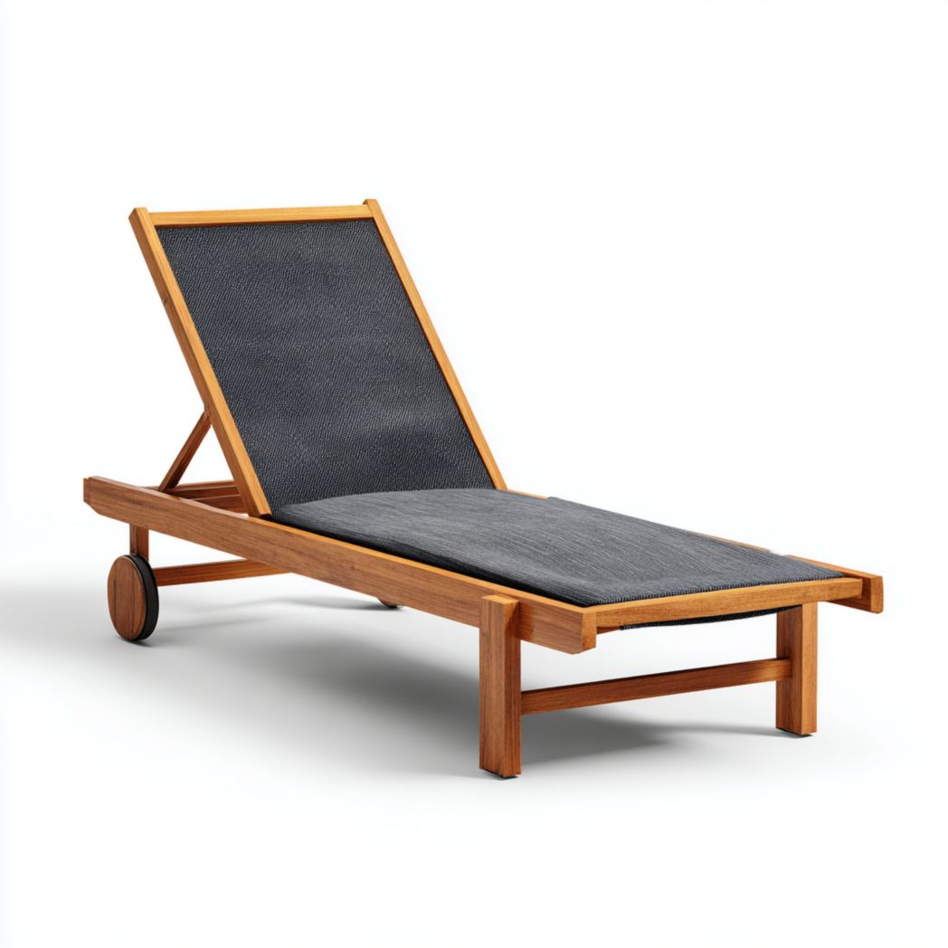 • Chaise longue de jardin en teck avec assise en textile gris